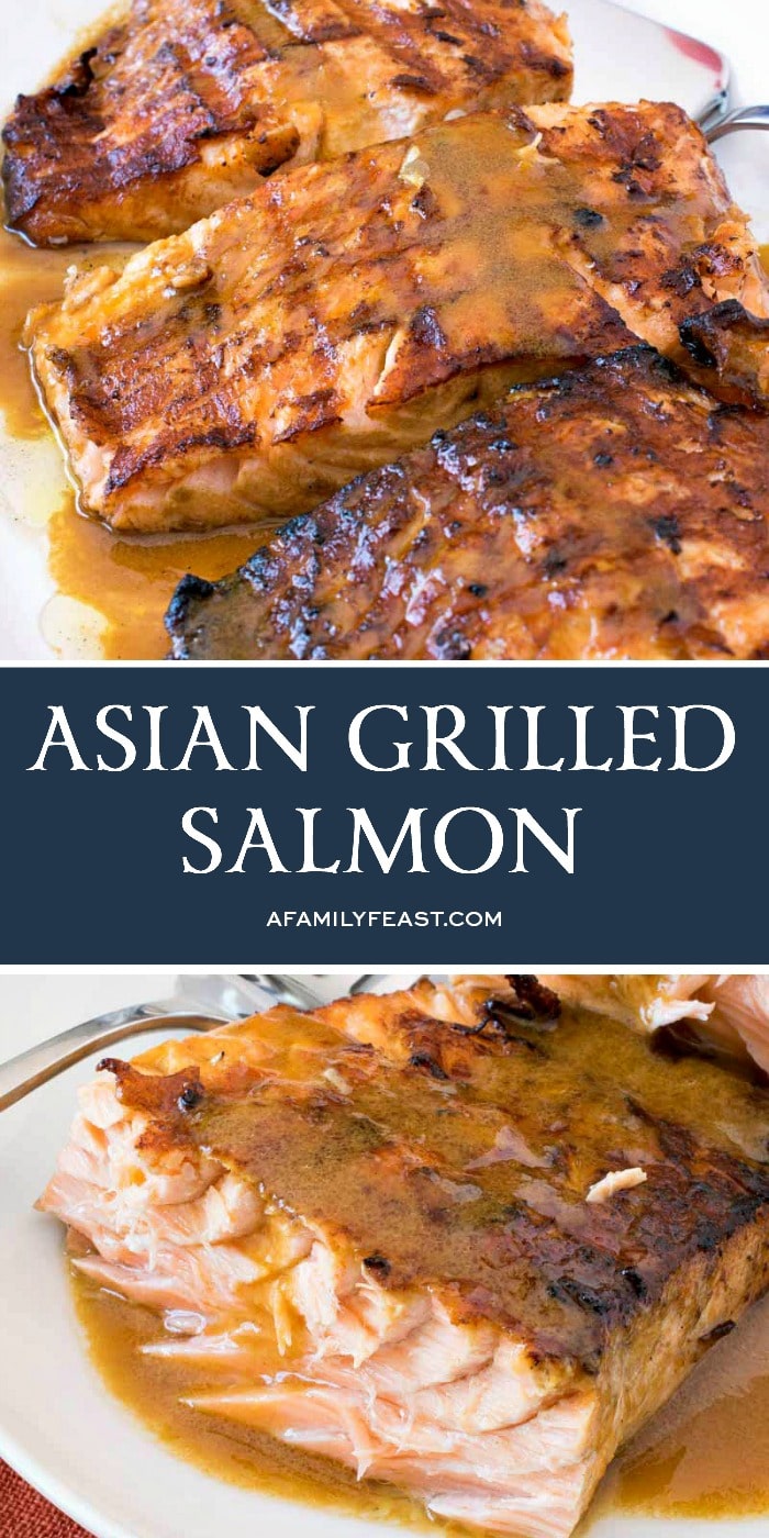 Serve your Asian Grilled Salmon immediately with the reserved sauce spooned on top.