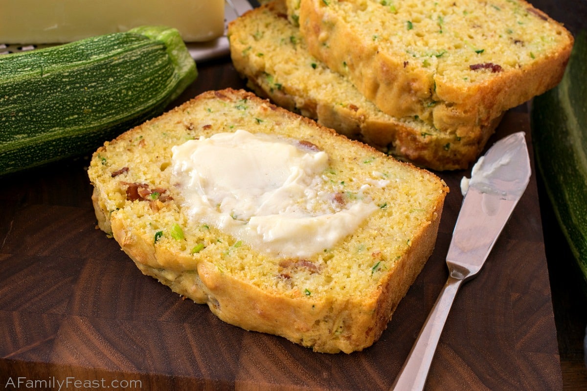 Our Cheesy Bacon Zucchini Bread bakes up perfectly, with a moist, dense texture and absolutely delicious flavor! Give it a try – I think it will have a permanent place on your summertime recipe list too!