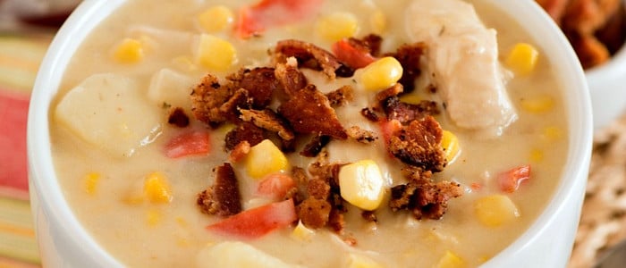 We originally shared this Chicken Corn Chowder recipe back in February 2013 – right after winter storm Nemo had hit New England – and we were without heat and electricity for several days. Four years later, I still remember how cold it was in our house! With a young daughter at home with us, once we ran out of wood to burn in our fireplace, we drove to a hotel about an hour away from our house just so we could warm up.