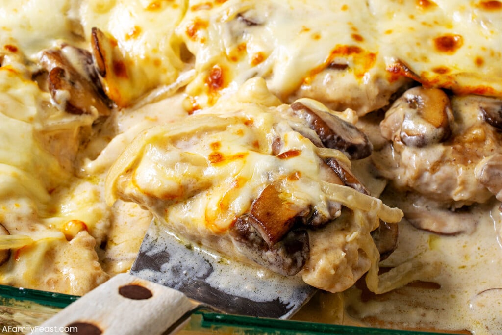 It’s a rich and cheesy chicken and mushroom casserole recipe that originated in the Betty Crocker corporate kitchens. On their website, ‘Betty’ credits her mom ‘Gloria’ for creating this special European-inspired dish.