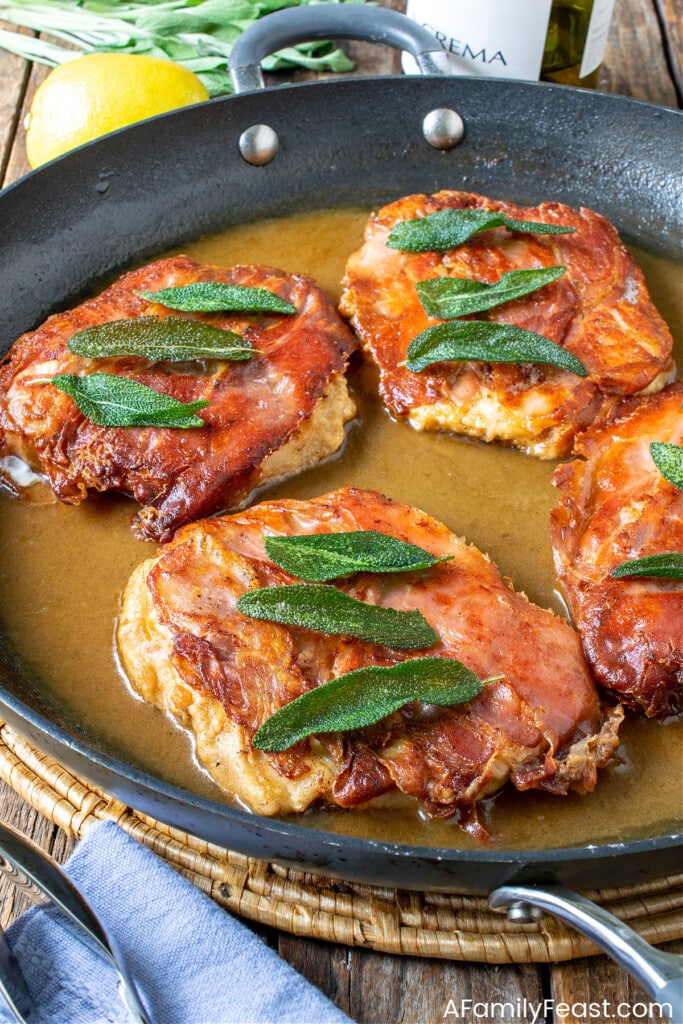 It’s a classic Italian dish that you’ll see on the menu at many Italian restaurants – made with pan-fried boneless cutlets of chicken, prosciutto, and sage.