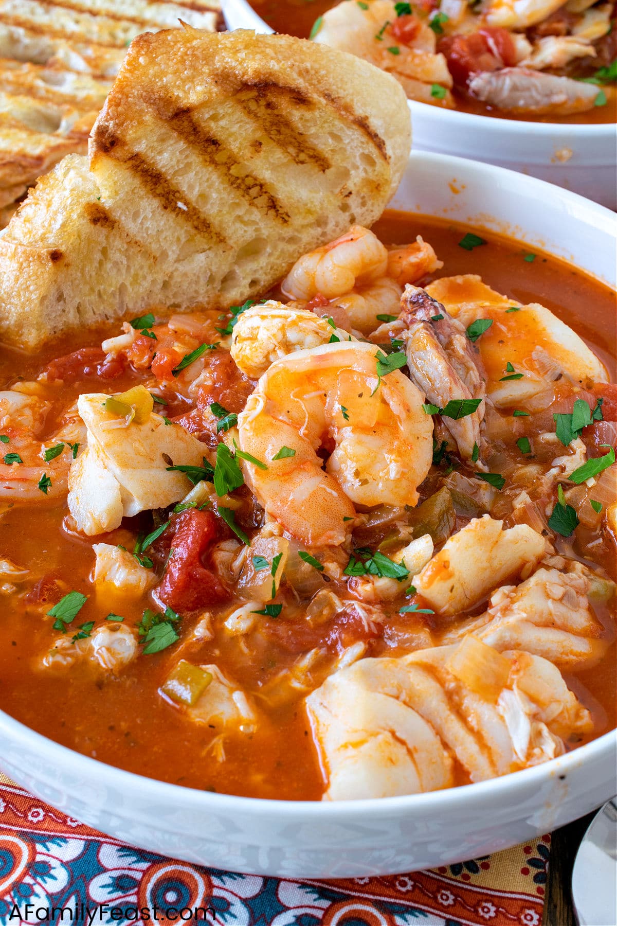 - Brush bread slices with olive oil and toast in a ribbed grill pan. Serve the toast with the finished Cioppino. Sprinkle chopped fresh parsley over portions when serving.