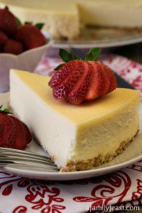 This Classic Cheesecake recipe was originally published on September 26, 2012. In fact, this was the very first recipe we published here on A Family Feast! Over the last 2-1/2 years, our photography skills have improved quite a bit and we felt that this post was long overdue for an update.