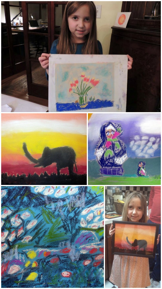 Every year Emma’s art teacher, Heidi Mayo, coordinates an annual art exhibit to showcase the incredible talents of her young students! As part of that exhibit each year, every one of Heidi’s students also creates and donates a pastel painting that gets auctioned off at the art exhibit opening party to benefit a very worthy cause!