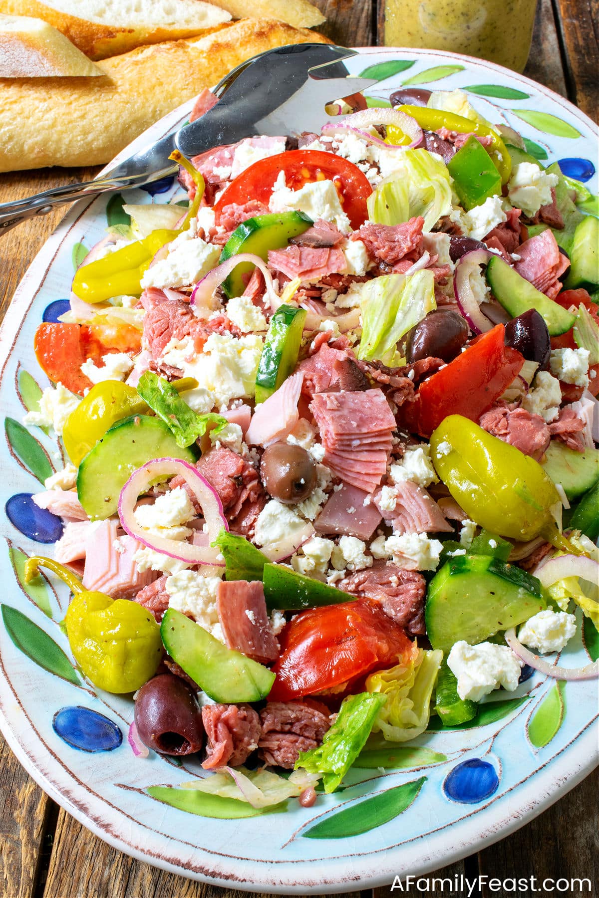 It’s made with crisp, fresh iceberg lettuce and other vegetables, and of course, Kalamata olives, pepperoncini, and good quality feta cheese. It’s topped with a generous portion of roast beef, Virginia ham, and genoa salami – but adding that is optional if you prefer your salad without meat.