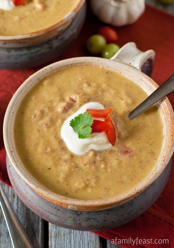 This is a thick and hearty soup – and a perfect meal for the cooler fall weather! Green tomatoes have such a wonderful and unique tartness to them and they are perfectly balanced by the smokiness of the Black Forest ham (found at most supermarket delis) as well as the other vegetables in this creamy soup.