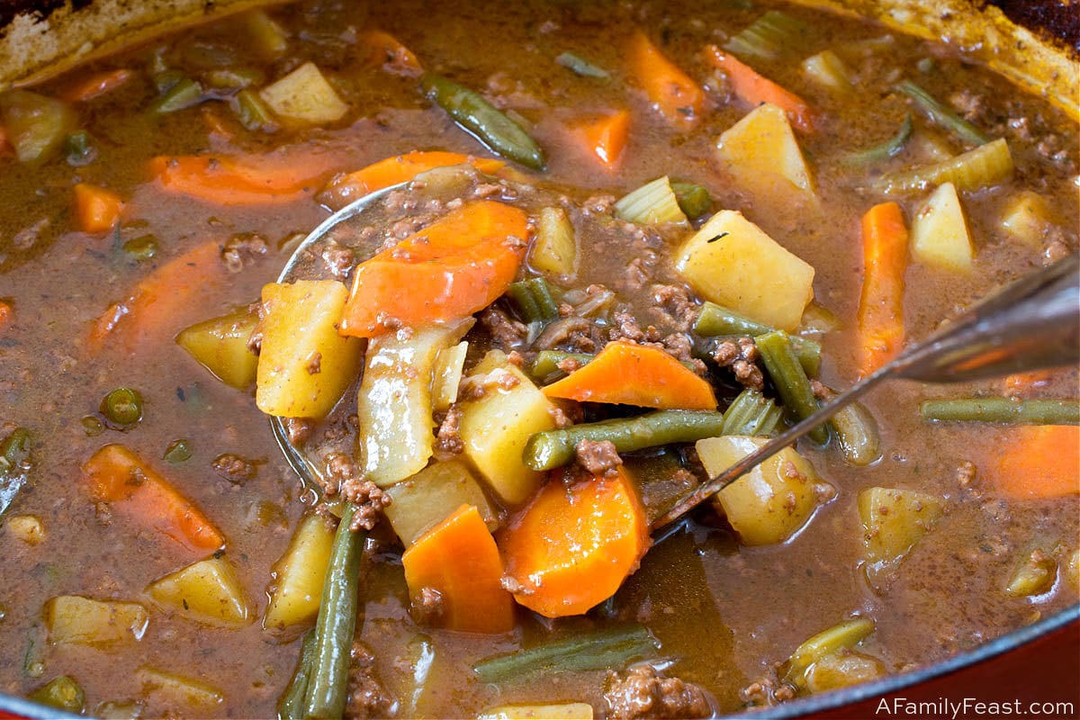 Hands down, this is the best stew that I have ever had or made. I followed the recipe to a tee, and it turned out far better than I ever thought it could. I was skeptical because I am not fond of stew and I have never liked hamburger in soups. My intention was to share this stew with my stepson and his family, but I ended up keeping it for us. It is that good. I will make him another batch another time. This stew has a deep, rich flavor, and it looks just like the picture. I would serve this to guests. I have discovered that anything I have tried from afamilyfeast has been a knock out.