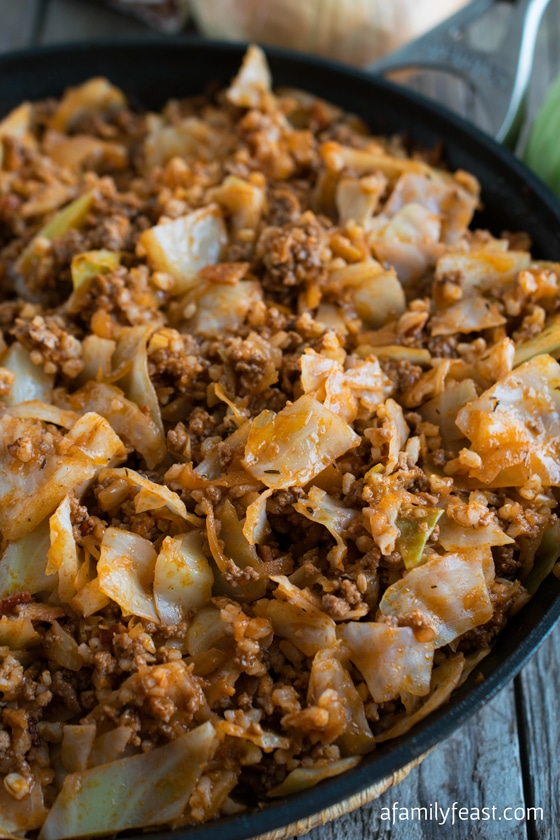 Just before serving, add some more sliced apples – and you’re done! This kielbasa and red cabbage skillet with apples is a simple, rustic dish with crunch and texture from the sliced apples surrounded by soft-cooked cabbage and zesty kielbasa. It’s as pretty to look at as it is delicious!