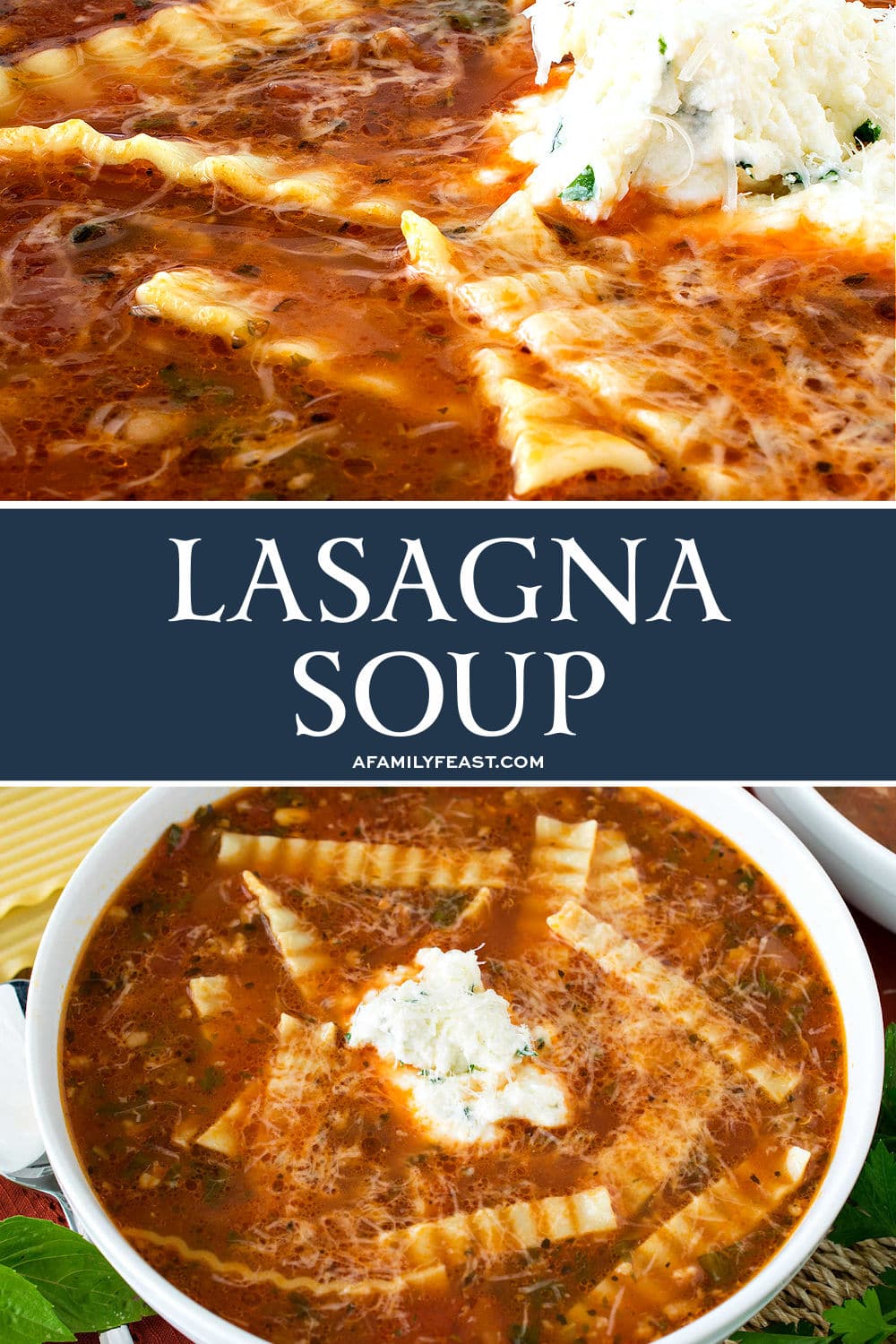- Can I make Lasagna Soup ahead of time? Yes, just keep the noodles and cheese topping separate from the broth and combine when serving.