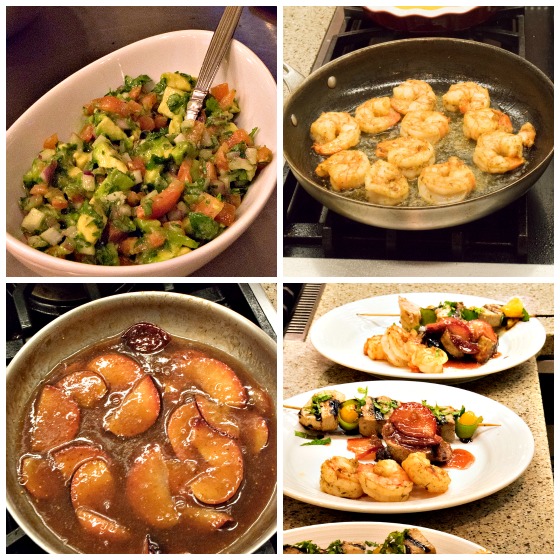 Our menu included a delicious avocado salsa that was served over shrimp, a wonderful zesty and sweet plum sauce that was served with pork tenderloin, lemon-glazed tuna kebobs, and a delicious fresh peach pie – all really fantastic!