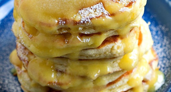 - Top pancakes with a generous spoonful of lemon curd and dust with powdered sugar before serving.