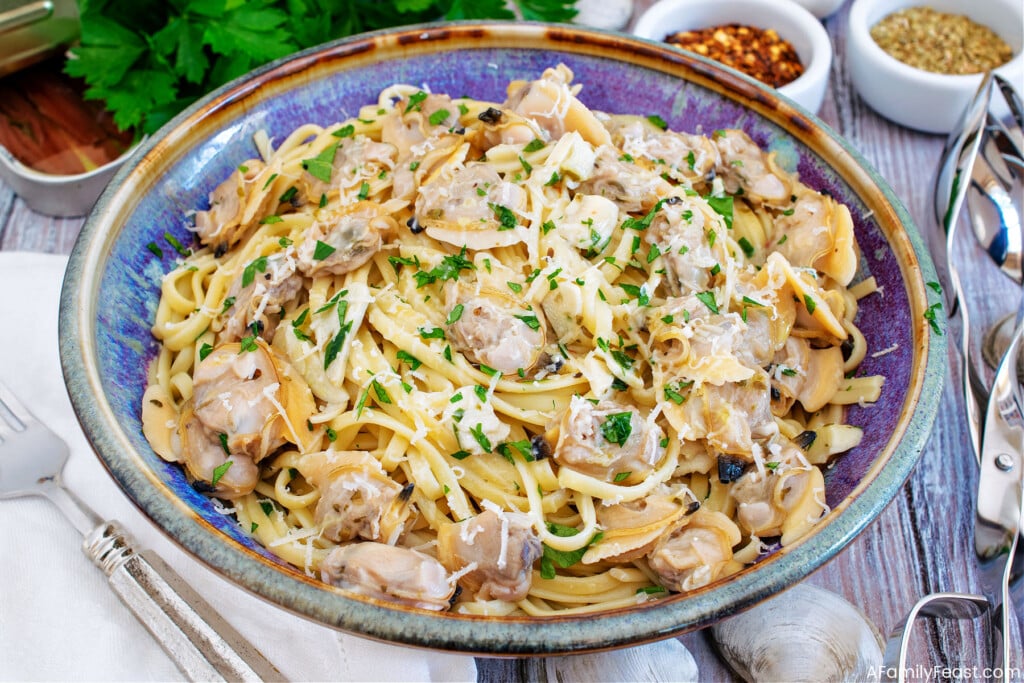 Our Linguine with White Clam recipe originally appeared on A Family Feast in October 2017. We’ve updated the post but the delicious 5-star recipe remains the same.