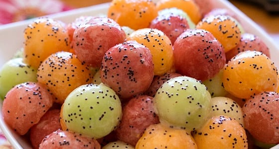 For me, summertime is synonymous with light and refreshing dishes – and our Melon Balls with Poppy Seed Dressing fits the bill perfectly! We’ve taken a simple fruit salad of watermelon, cantaloupe and honeydew and cut each melon into balls (this is a great tool to use) – then made it so much deliciously better by adding our homemade poppy seed dressing!