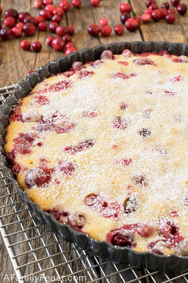 We served this Nantucket Cranberry Tart with a simple sprinkle of confectioners’ sugar on top, but I also think it would be delicious served warm with a scoop of vanilla ice cream on the side.