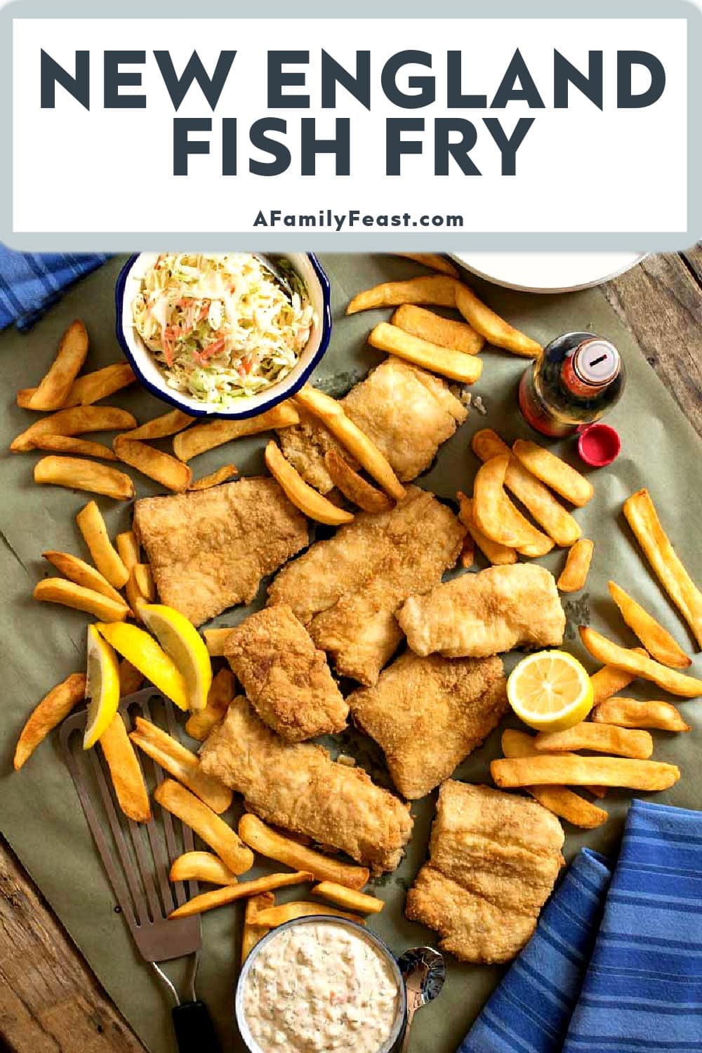 Make a real New England Fish Fry at home! Tender cod or haddock is dipped in a light and flavorful coating, then fried to crispy perfection.