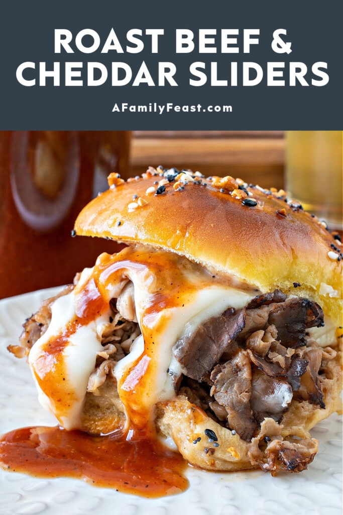Tender sliced roast beef is pilled up on soft slider rolls with two kinds of sauce – a creamy cheddar cheese sauce and our copycat Arby’s sauce. (It tastes just like the sauce served at the restaurant!)