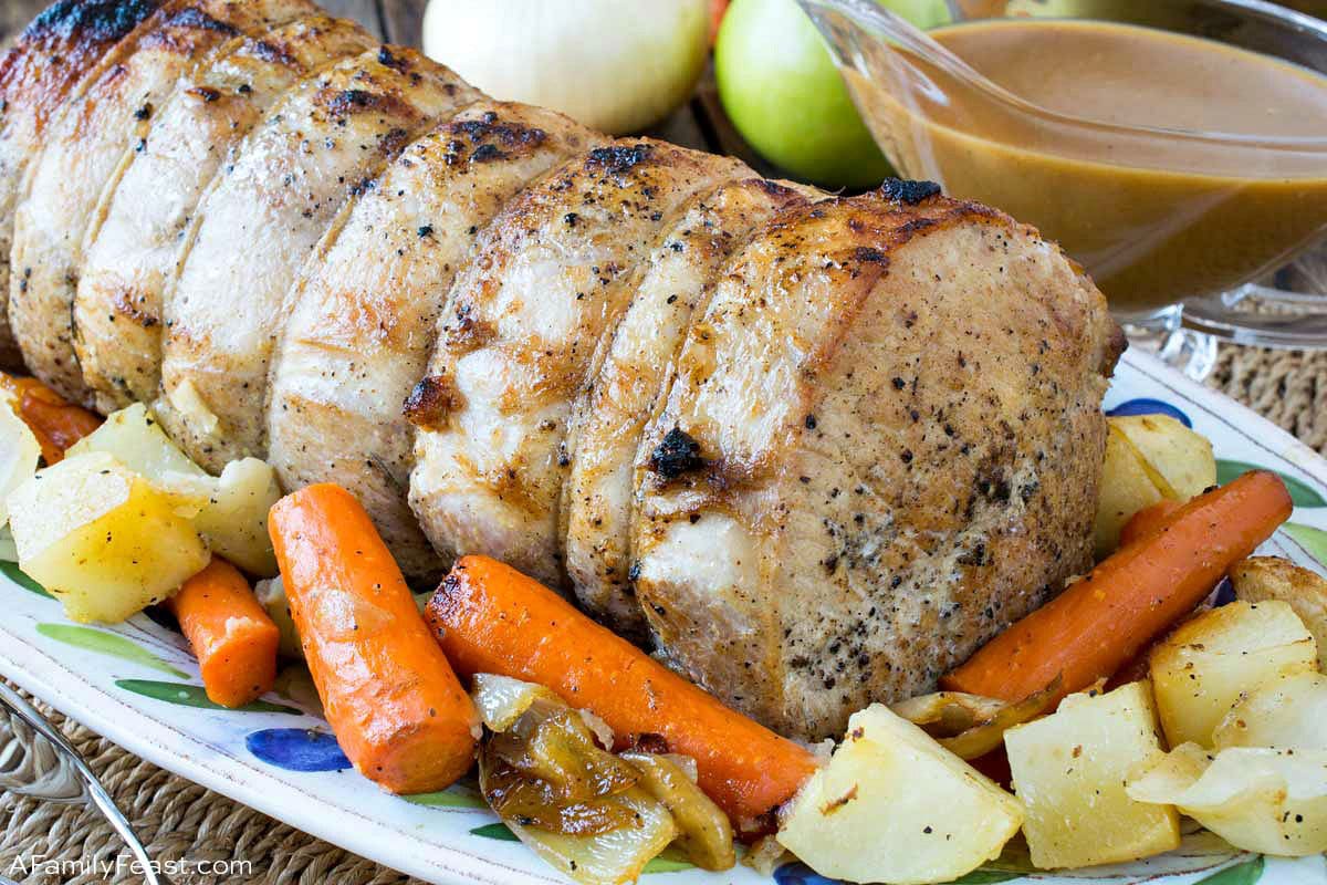 Our Roasted Pork Loin recipe is easy, and it uses simple ingredients you probably have in your kitchen. This recipe also includes roasted vegetables you can serve on the side, and a wonderful gravy to spoon over each serving.