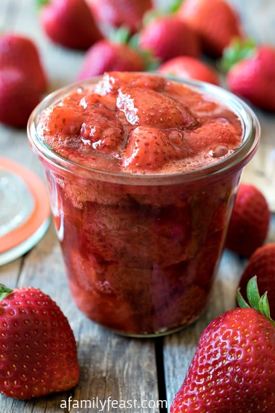 - Remove from the oven and carefully pour strawberries and juices into a jar or bowl. Cool before using.