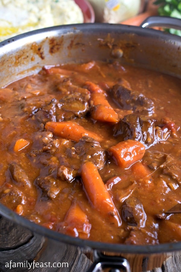 Our version includes beef, pork, chicken and veal that is cooked until fork-tender in a beefy tomato broth. We also included some carrots and onions for more earthy flavor.