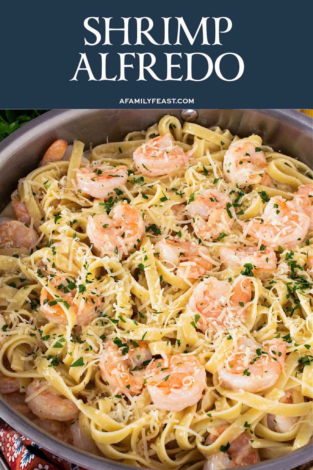 - Wide skillet to cook shrimp and prepare the Alfredo sauce