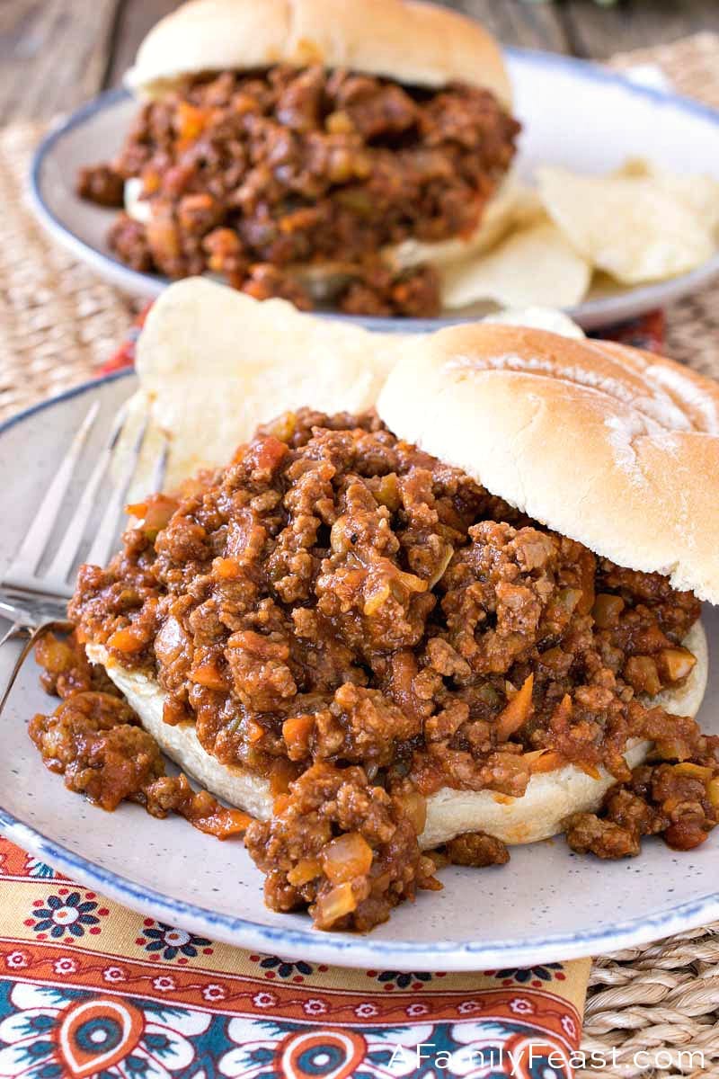 This Sloppy Joes recipe originally appeared on A Family Feast in July 2013. We’ve updated the photos and recipe a bit.