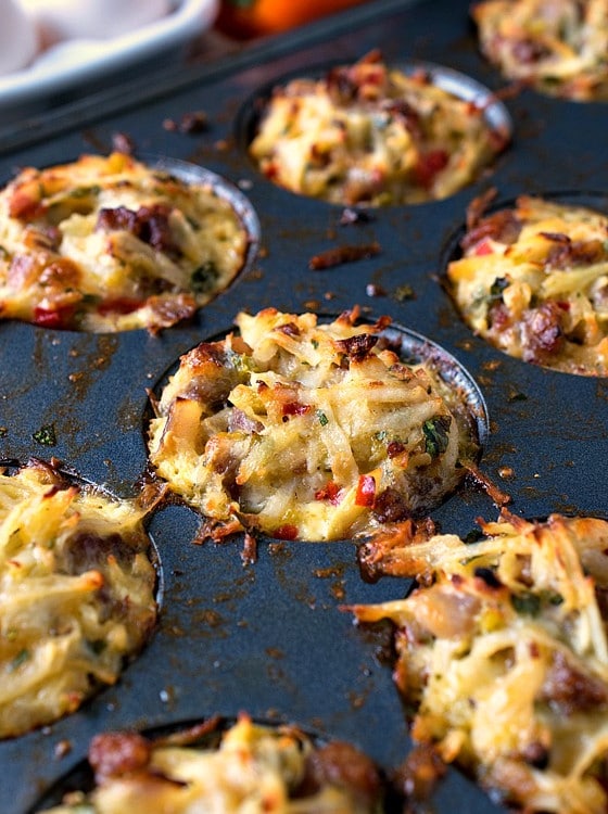 Southwestern Breakfast Muffins are an easy and delicious breakfast on-the-go. Muffins made with cheese, sausage, hash browns, eggs and peppers!