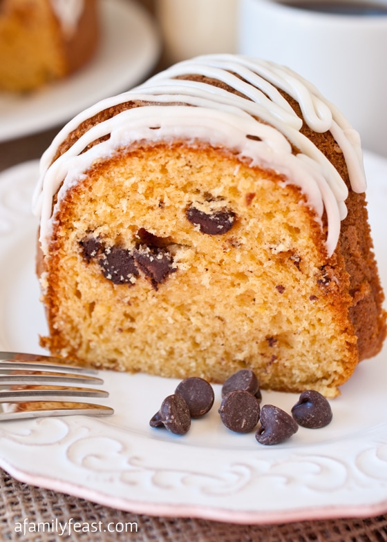 We’re continuing the eggnog theme for another day with this recipe for Spiced Eggnog Chocolate Chip Cake! We had some leftover eggnog after making yesterday’s Spiced Eggnog Cocktail – and inspiration was born!