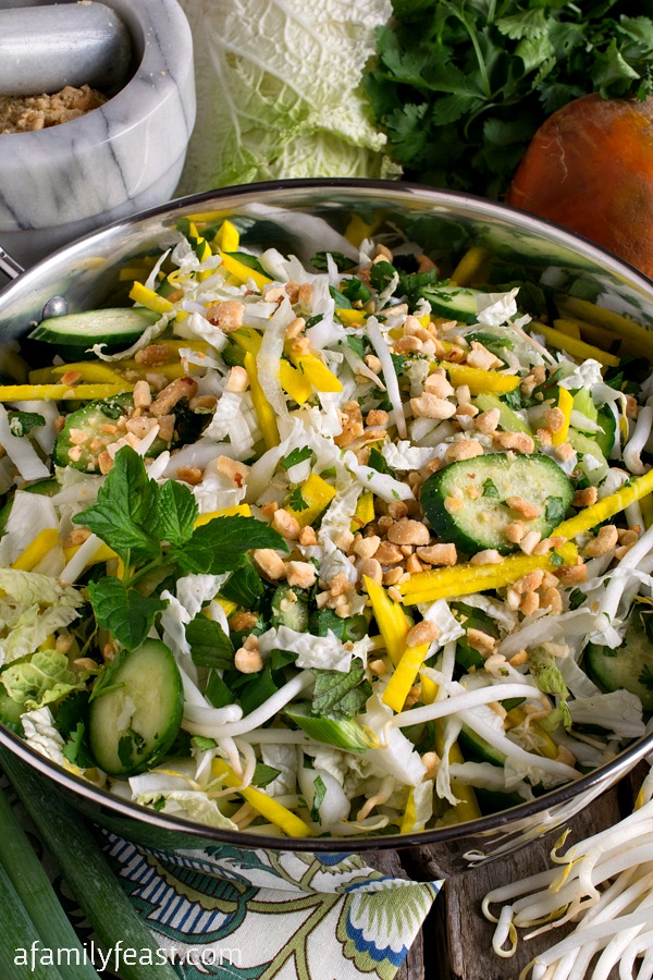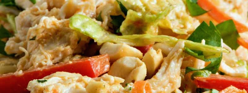 Finally, you’ll toss the salad together with some of our luscious Thai Chili Peanut Sauce – an easy and addictively good peanut sauce with a kick of Thai spices and flavors – as the dressing. A final sprinkle of more chopped peanuts and cilantro tops things off.