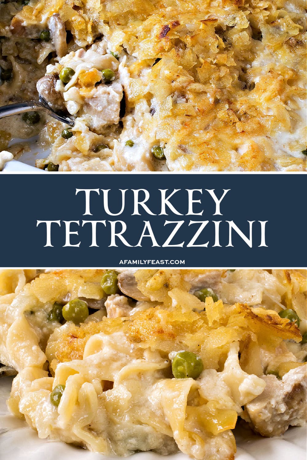 Turkey Tetrazzini combines leftover turkey, egg noodles, mushrooms, and peas in a creamy cheese sauce. Dig into delicious layers covered in crunchy topping!